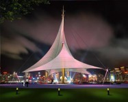 張拉膜以性能優(yōu)良柔軟織物為材料,由膜內(nèi)空氣壓力支撐膜面,或利用柔性鋼索或剛性支撐結(jié)構(gòu)使膜面產(chǎn)生一定的預(yù)張力,從而形成具有一定剛度、能夠覆蓋大空間的結(jié)構(gòu)體系。張拉膜結(jié)構(gòu)造型自由、輕巧、柔美,充滿(mǎn)力量感,又因其材質(zhì)的可塑造性強(qiáng),因此建筑師結(jié)合張拉膜的這種特性,充分發(fā)揮建筑師的想象力,用不同的裁剪和不同的節(jié)點(diǎn)位置形狀而產(chǎn)生出的不同的藝術(shù)表現(xiàn)形式,可謂是一種新型藝術(shù)的表現(xiàn)形式。張拉膜不僅讓我們?cè)谕庥^上感到其具有很好地觀賞性,再其內(nèi)在的質(zhì)地上也是相當(dāng)?shù)牟诲e(cuò),是用高強(qiáng)度柔性薄膜材料經(jīng)受其它材料的拉壓作用而形成的穩(wěn)定曲面,能承受一定外荷載的空間結(jié)構(gòu)形式,而其阻燃、制作簡(jiǎn)易、安裝快捷、節(jié)能、易于、使用安全等優(yōu)點(diǎn),所以說(shuō)是無(wú)可挑剔的絕好的材質(zhì)。