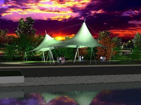 建筑環保節能:膜結構建筑具有良好的環保性、透光性、自清潔性,膜材表面采用PVDF(聚偏二氟乙烯)涂層、或二氧化鈦涂層,具有較好的隔熱效果,對太陽熱能可反射掉70%,膜材本身吸收了17%,傳熱13%,而透光率卻在20%以上,經過長期太陽光直接照射,其輝度仍能保留70%。